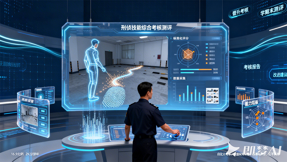 系统构建智能化、数据化的全维度综合考核体系,分为练习评估和正式考核两大模块,覆盖理论考核与实战考核。实战考核中实时采集学员操作时长、错误次数、证据链完整性等核心指标,自动比对公安行业规范流程,判定操作合规性。实现考核结果可量化、可追溯,为教学评价提供科学依据。