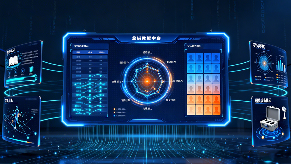 系统构建智能化、数据化的全维度综合考核体系,分为练习评估和正式考核两大模块,覆盖理论考核与实战考核。实战考核中实时采集学员操作时长、错误次数、证据链完整性等核心指标,自动比对公安行业规范流程,判定操作合规性。实现考核结果可量化、可追溯,为教学评价提供科学依据。