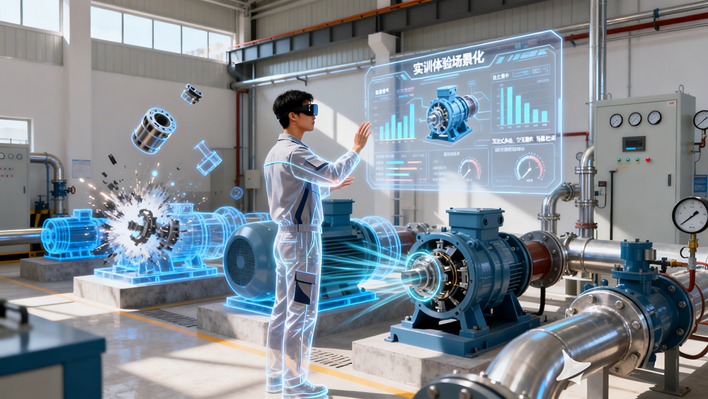 精准复刻水泵机组拆卸全流程,涵盖核心部件吊出、主轴解体等关键步骤,与安装环节形成实操闭环。以三维动画 + 交互形式呈现各步骤,搭配操作讲解明确规范与技巧。使用者可在虚拟环境自主实操,无设备损耗和安全隐患,通过反复练习掌握拆卸方法与重难点,提升装拆实操能力和逻辑理解。